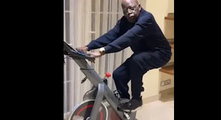 As seen in the video, the former Lagos State Governor was in a workout session, riding a spinning bike with Asake's hit song, 'Organise' playing in the background.